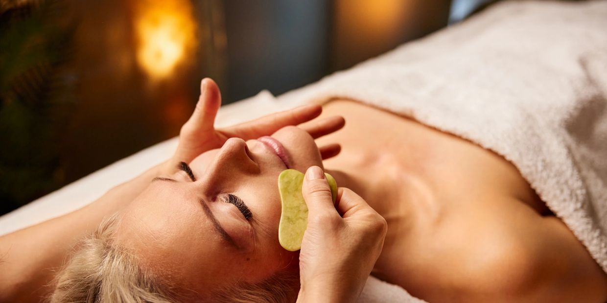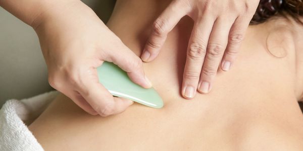 Gua Sha is an ancient Traditional Chinese Medicine technique that involves using a smooth-edged tool to gently scrape the skin, stimulating circulation and lymphatic drainage.